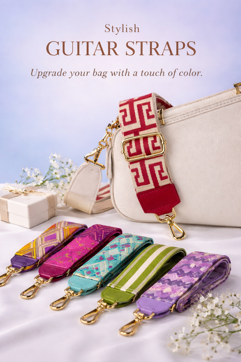 Give every bag a fresh personality with the Guitar Straps Collection, Italian‑made crossbody...